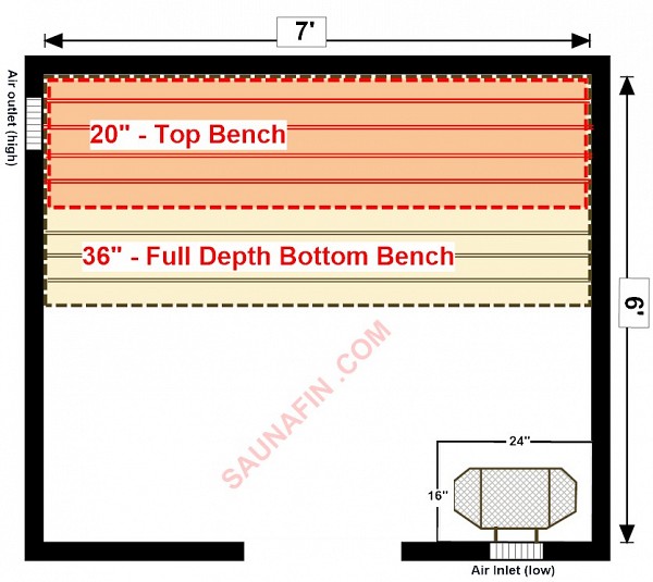 It is important to have two tier benches. the warmest air is closer ot ceiling. Sitting at a lower level, you will not feel the heat.